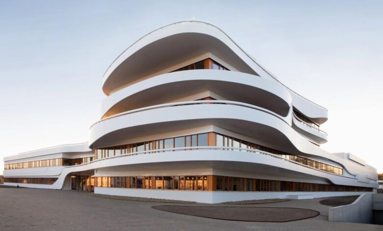 A. Algorithmic Forms: Architects define a set of mathematical rules and performance goals (e.g., solar shading, structural load distribution) that automatically generate the building’s complex geometry.